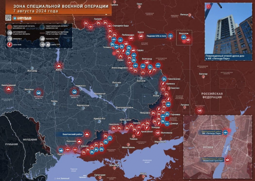 Новая карта боевых действий в зоне СВО на Украине от 8 августа 2024 года