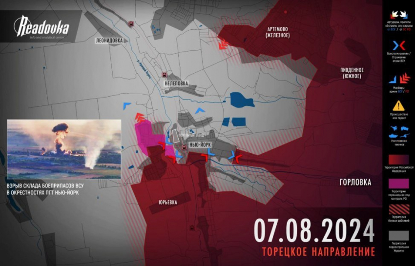 К Нью-Йорку наши войска наступают и со стороны Железного для замыкания окружения. Попавший в «котел» противник не сможет усилить гарнизон Торецка, ситуация в предместьях которого для ВСУ также приобрела угрожающий характер. Уже сейчас понятно, что на Торецком направлении украинская армия оказалась на грани катастрофы.