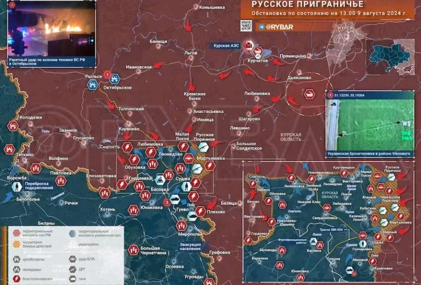 Свежая карта боевых действий в зоне СВО на Украине от 09.08.2024