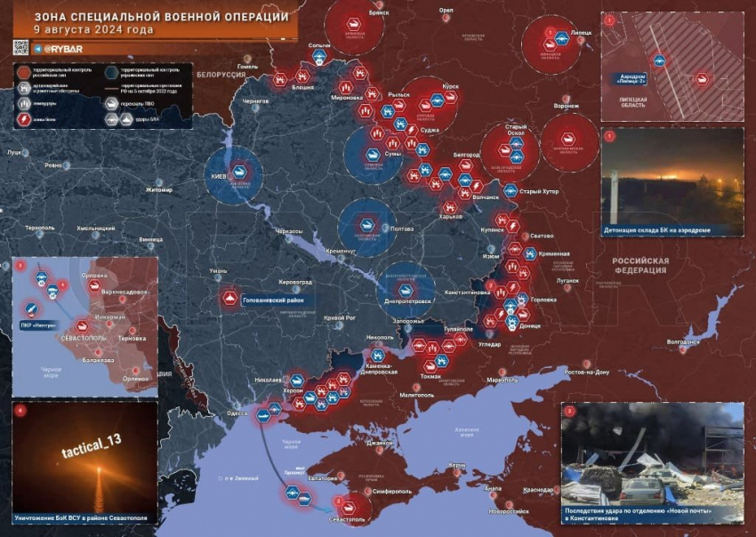 Новая карта боевых действий в зоне СВО на Украине от 10 августа 2024 года