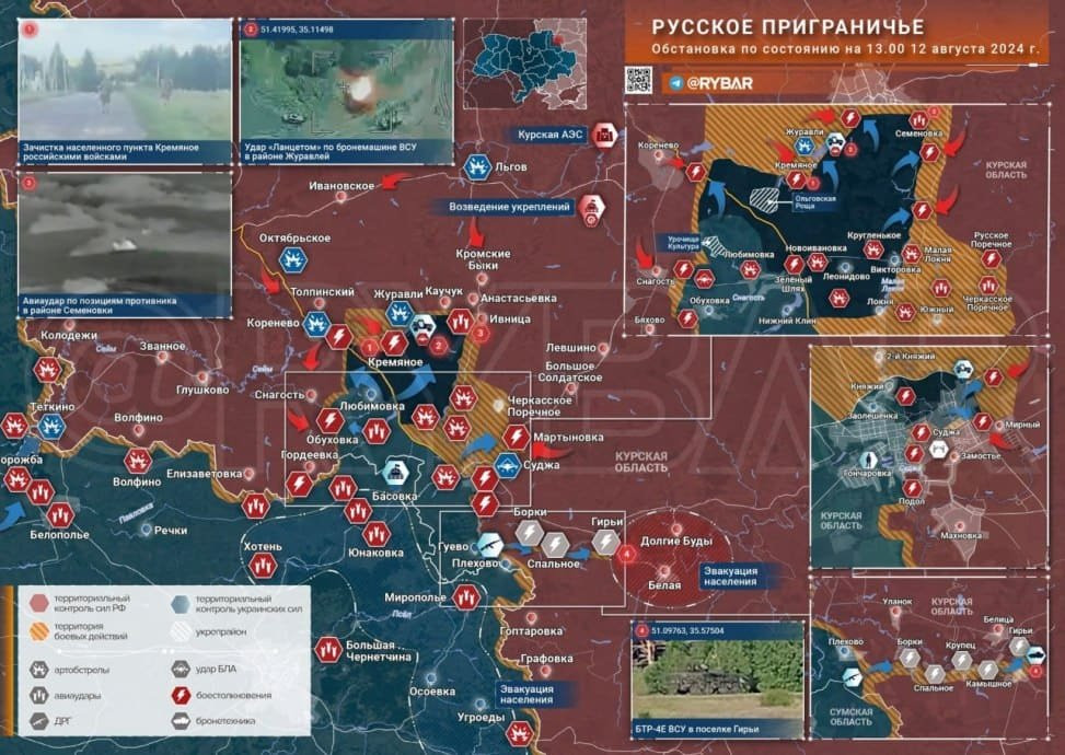 Ситуация в Курской области - последние новости и новая карта боевых действий на понедельник, 12 августа. Ситуация в приграничных населенных пунктов остается достаточно напряженной.