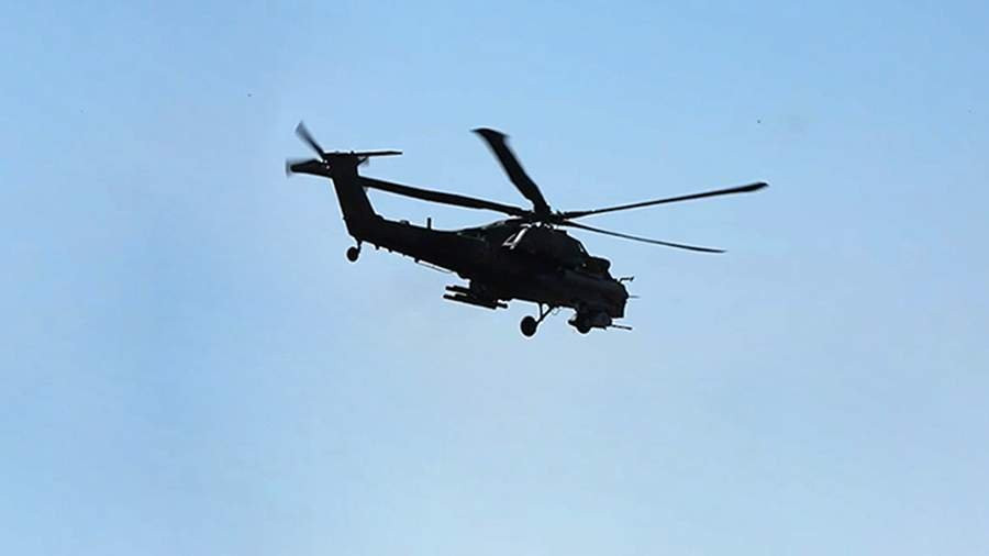 Ми-35М ударил ракетами С-8 по бронетехнике ВСУ в Курской области