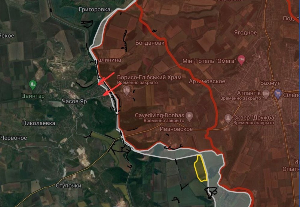 На Артемовском направлении ВС РФ действуют малыми штурмовыми группами, отбивая дом за домом и стремятся улучшить свои позиции по флангам. Российским силам удалось продвинуться еще на двух улицах в мкр. Октябрьский.
