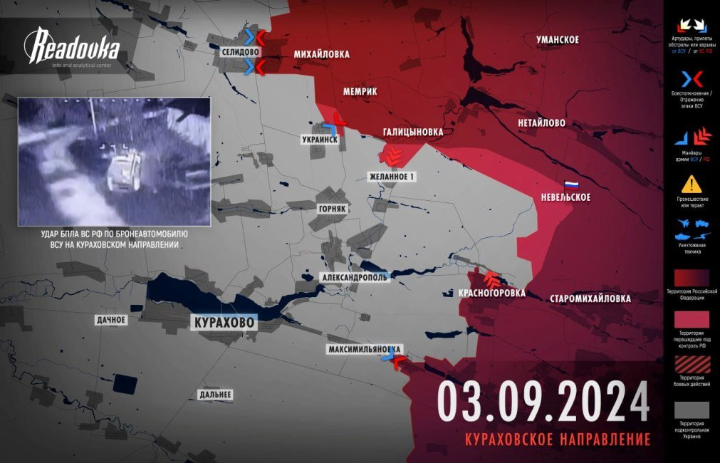 На Донецком направлении идут бои за Селидово, Украинск и в районе Желанного Первого. Днем появилась информация об освобождении Невельского, однако пока подтверждений этому нет, а кадры, распространяющиеся в качестве подтверждения сняты в другом месте.