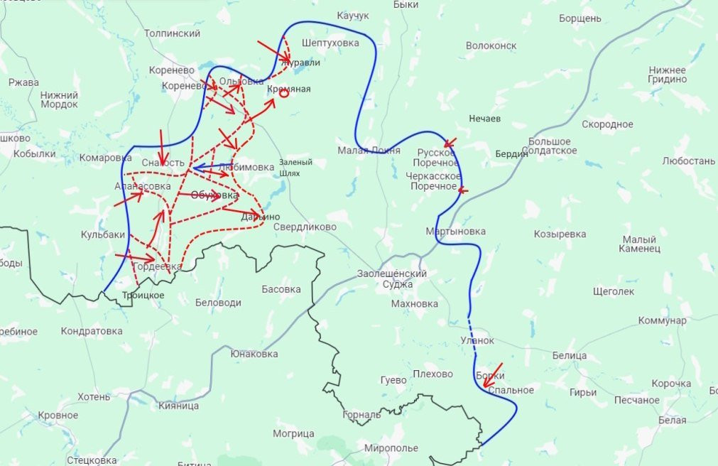 Судя по конфигурации своих резервов, именно Суджу противник намерен держать до конца. А вот остальными своими «завоеваниями» здесь, в случае новых наших ударов он вполне готов пожертвовать.
