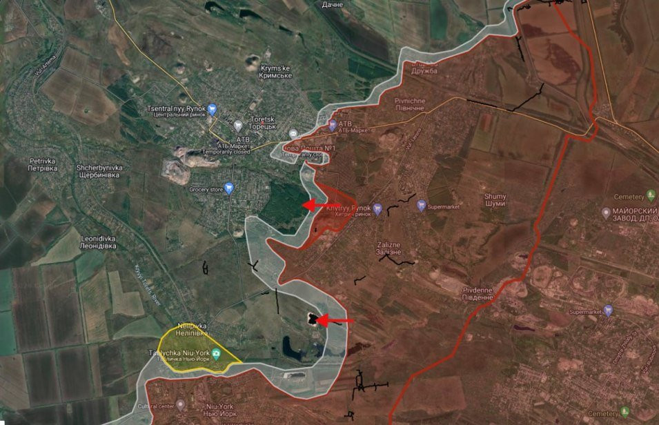 На Торецком направлении в Торецке ВС РФ ведут штурмовые действия вдоль улиц Центральная, Яблоневая и Слободская.