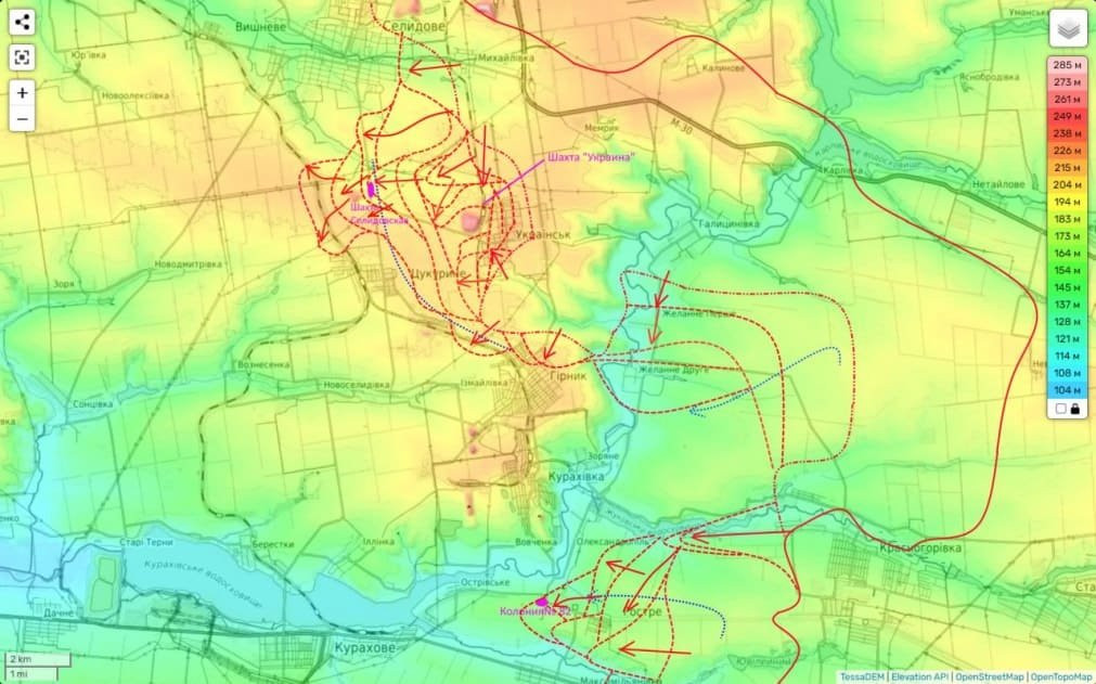 Наши штурмовики, опираясь на занятую накануне шахту (вместе с терриконом) «Селидовская, развили свое наступление на линию железной дороги и сумели там не только закрепиться, но и дойти до северных окраин Цукуриного и там закрепиться.