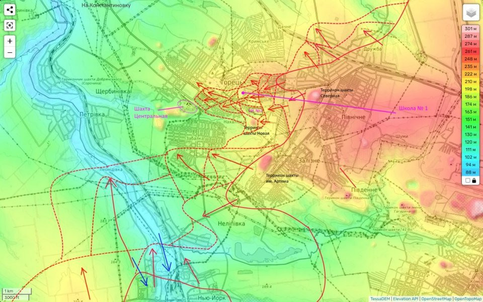 Тем временем на Торецком направлении очень похоже, что следующим объектом штурма в Торецке станет шахта «Центральная», которую обрабатывает наша авиация и артиллерия и к которой наши штурмовики вышли с востока и северо-востока.