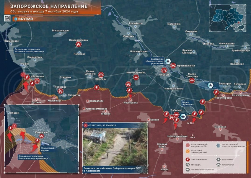 На Запорожском направлении штурмовики ведут бои в центральной части Каменского, к северу от реки Янчекрак.