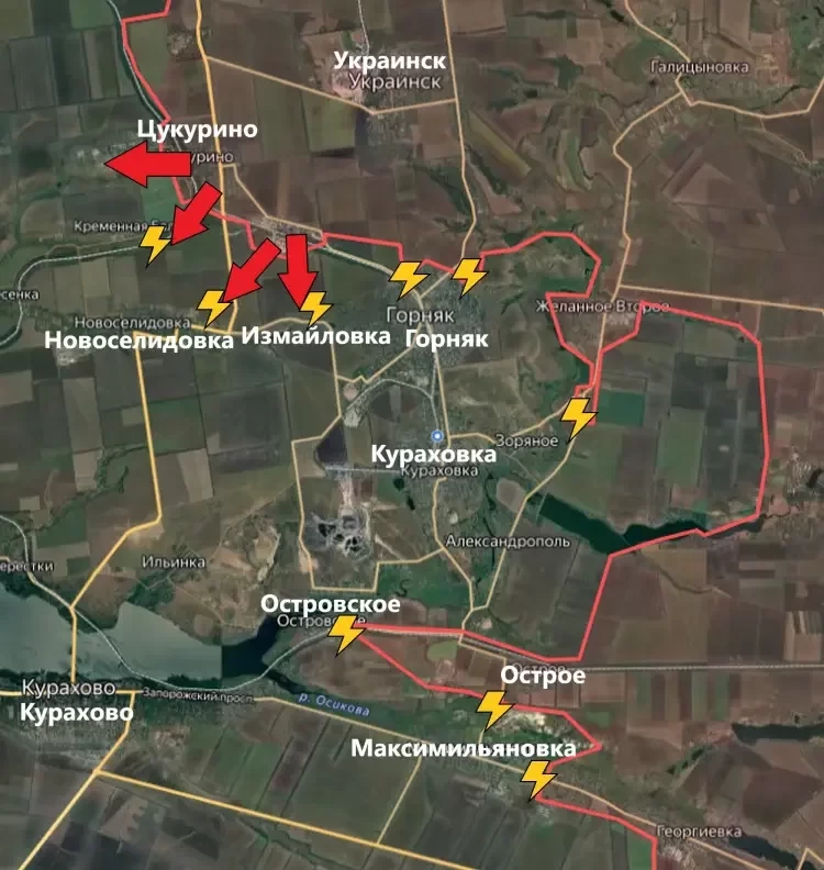 На Покровском направлении ВС России продвинулись вдоль восточной лесополосы на глубину до 400 метров. На западной окраине Цукурино российские войска заняли часть улиц Джерельная и Челюскина на участке шириной до 950 метров.