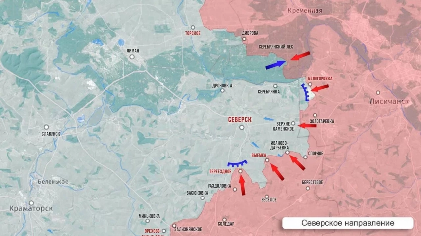 С Северского направления много противоречивой информации. Сообщения о взятии под контроль сел Григоровка и Верхнекаменское несколько опережают события, учитывая, что бои за эти села идут не месяц и даже не год. Сложнейший рельеф местности не позволяет выбить противника с господствующей высоты - горы Белая, расположенной между Григоровкой и Верхнекаменским. До взятия этой высоты любые попытки продвижения в тыл противника будут авантюрой. В районе Выемки и Ивано-Дарьевки также упорные позиционные бои.