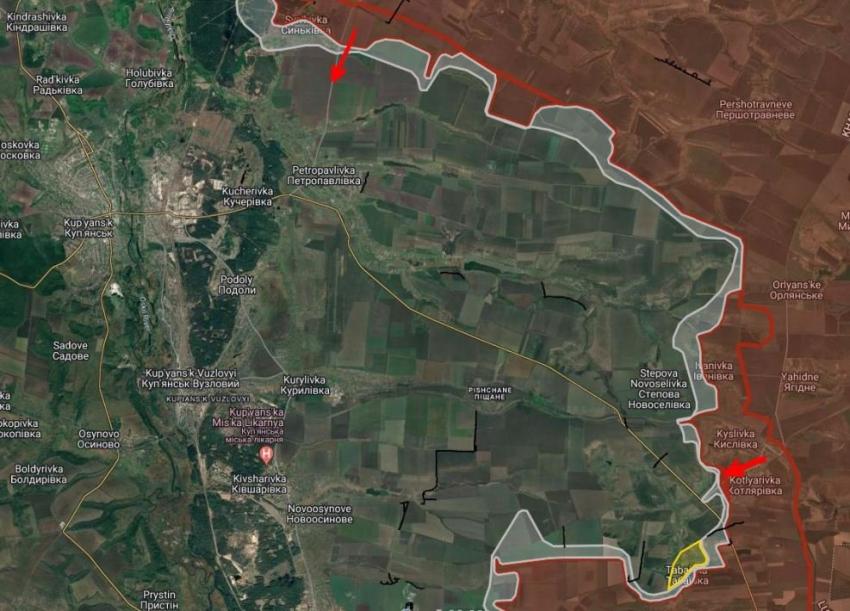 На Купянско-Лиманском направлении ВС РФ ведут штурмовые действия в направлении Петропавловки, имеются тактические успехи. Российские войска продвинулись западнее Котляровки на глубину до 1 км. Под контроль ВС РФ перешла Мясожаровка, российские войска давят в направлении Вишневого.