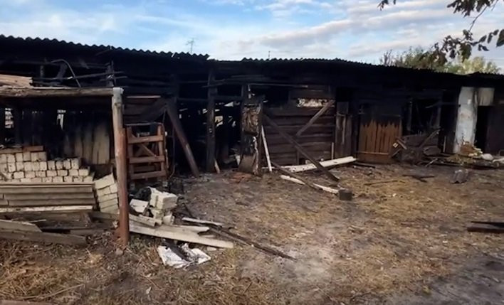 На кадрах можно увидеть сгоревшие хозяйственные постройки.