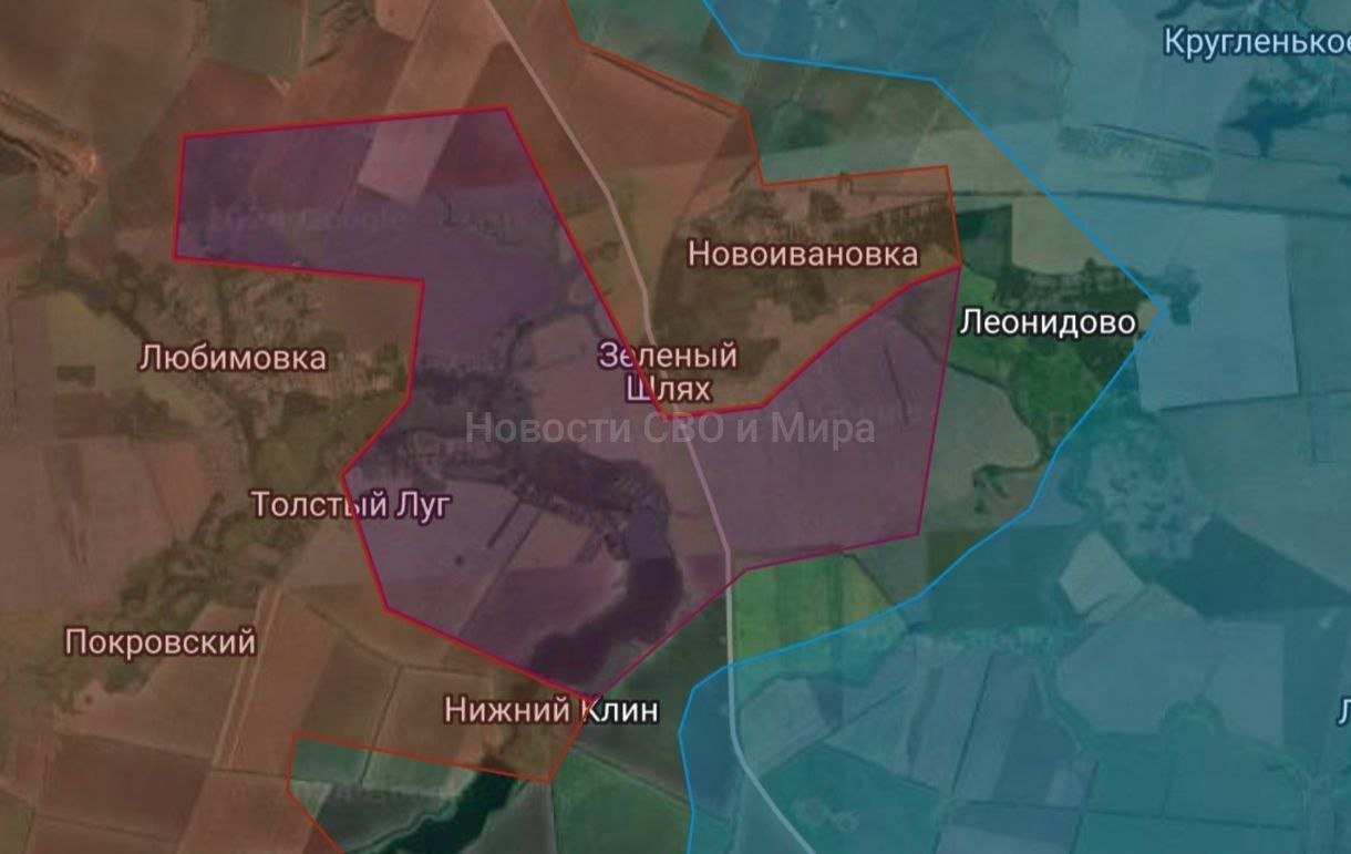 Наши войска зачистили Толстый Луг, также зачистили в районе Любимовки и Зелёного Шляха. Освобождено 21 км². Калинов. Наши войска продвинулись восточнее села. Освобождено 6 км².