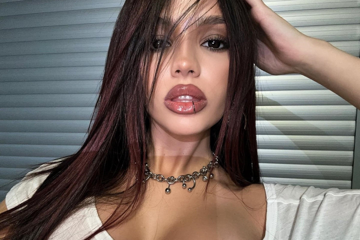 На фотографиях артистка предстает перед объективом в довольно вызывающем наряде. В образ 22-летней певицы входят обтягивающая спортивная черная кофта с белым принтом, короткие черные мини-шорты, дополненные белыми кружевными чулками и туфли на высоких каблуках.