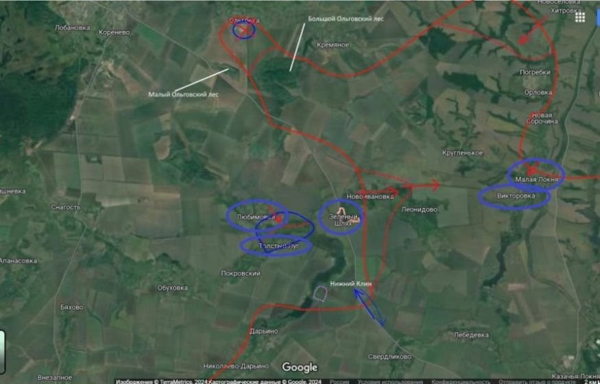Штурмовые отряды, получив поддержку от бронетехники, начали активное наступление к Викторовке в районе Малой Локни. Бои здесь были особенно интенсивными - часть техники была подбита, как сообщают наши военные корреспонденты, однако российский десант, проявивший храбрость и стойкость, высадился и продолжил наступление, лишив врага возможности удержать свои позиции.