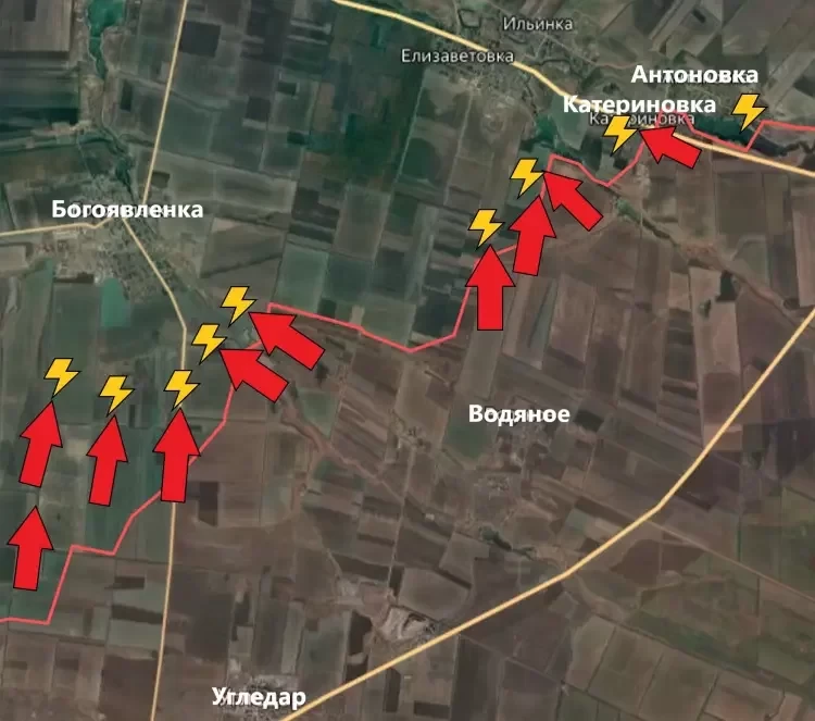 На Угледарском направлении штурмовые подразделения ВС РФ ведут бои в центре Катериновки и на восточных окраинах Антоновки, сообщает PulsePen.