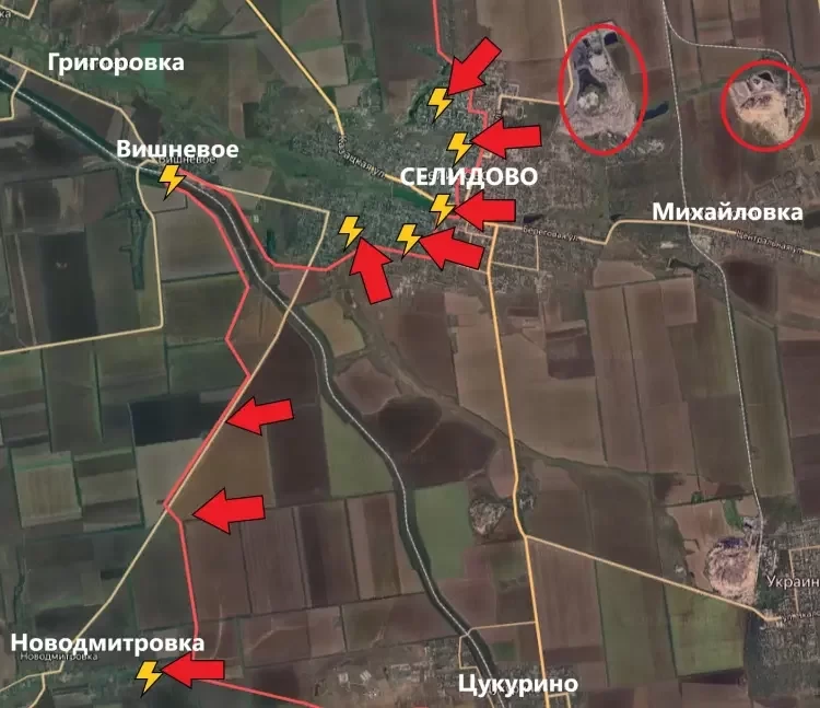 Продолжаются бои в Вишневом, которое пока что не поддаётся нашим штурмовикам. Ещё южнее идут бои на восточных окраинах Новодмитровки. Также наши бойцы расширяют зону контроля юго-западнее Селидово.