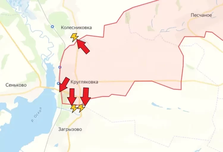 На Купянском направлении армией РФ освобождена Кругляковка Путь снабжения украинских формирований южнее (через Сеньково) перерезан полностью. Наши бойцы продвигаются на юг. Боестолкновения идут у административных границ Загрызово. Также бои идут в населённом пункте Колесниковка, которое пока что удаётся удерживать боевикам киевского режима.
