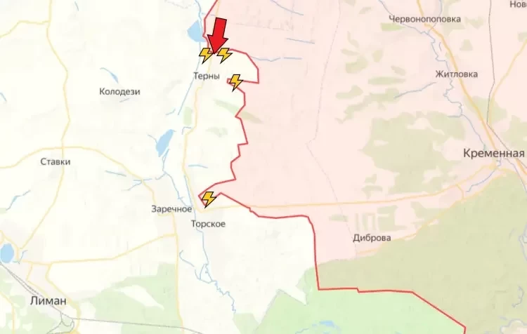 На Лиманском направлении продолжаются бои на северных окраинах населённого пункта Терны. Пока что серьёзного продвижения в населённом пункте не зафиксировано. Наши бойцы, располагающиеся восточнее села, пока что прорваться на запад не могут, отмечает PulsePen. Идут бои в северной части Торского.