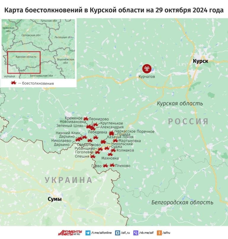 Новая карта боевых действий в Курской области по данным на 29.10.2024