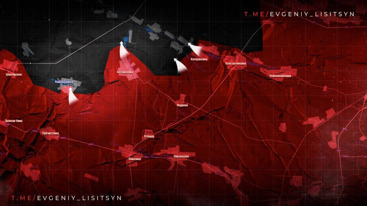 От Богоявленки, недавно перешедшей под контроль Армии России, наши бойцы продвигаются на запад и на север в направлении Успеновки.