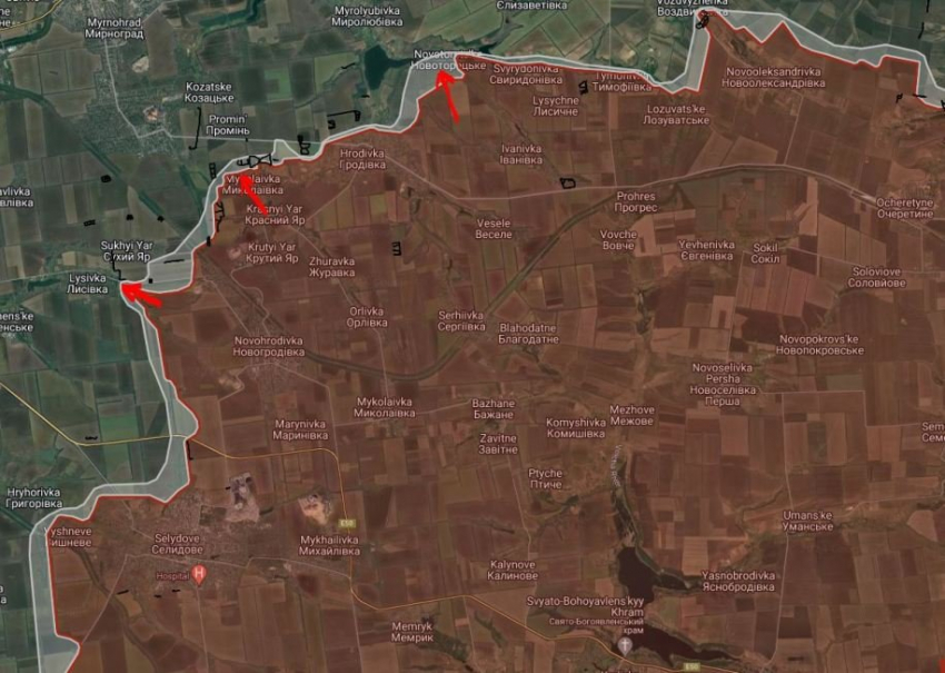 На Константинопольском направлении российские войска давят севернее Богоявленки в направлении Трудового. Между Богоявленкой и Новоукраинкой ВС РФ продвинулись на участке шириной до 7.8 км на глубину до 2.8 км.