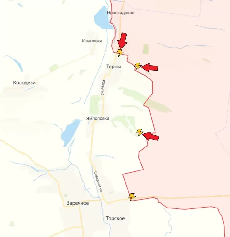 На Лиманском направлении российские бойцы закрепились на северных окраинах Тернов и постепенно продвигаются в центр населённого пункта. Некоторые источники утверждают, что уже освобождено около 50% этого проклятого села. Восточнее Ямполовки есть небольшое продвижение. Немного прояснилась ситуация в Торском. Наши бойцы находятся на восточных подступах к селу, а в самом населённом пункте их нет. Выбили их ВСУ или же наши бойцы так и не заходили в Торское - неизвестно, передает PulsePen. Стоит отметить, что некоторые источники до сих пор утверждают, что наши штурмовые отряды орудуют в Торском и даже взяли его центр.