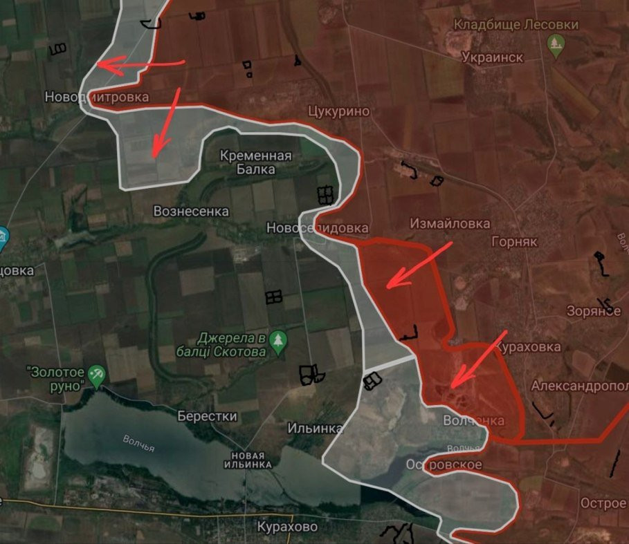 На Покровском направлении в Новодмитровке российские войска расширили контроль территории в центральной части и продолжают давить в западном и южном направлениях, отмечает Telegram-канал "БелВПО". Также ВС РФ продвинулись южнее Измайловки, в районе террикона ЦОФ «Кураховская» и в восточной части Волченки на участке шириной до 5.58 км на глубину до 1.8 км.