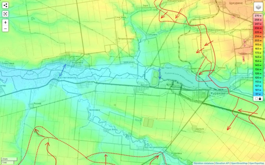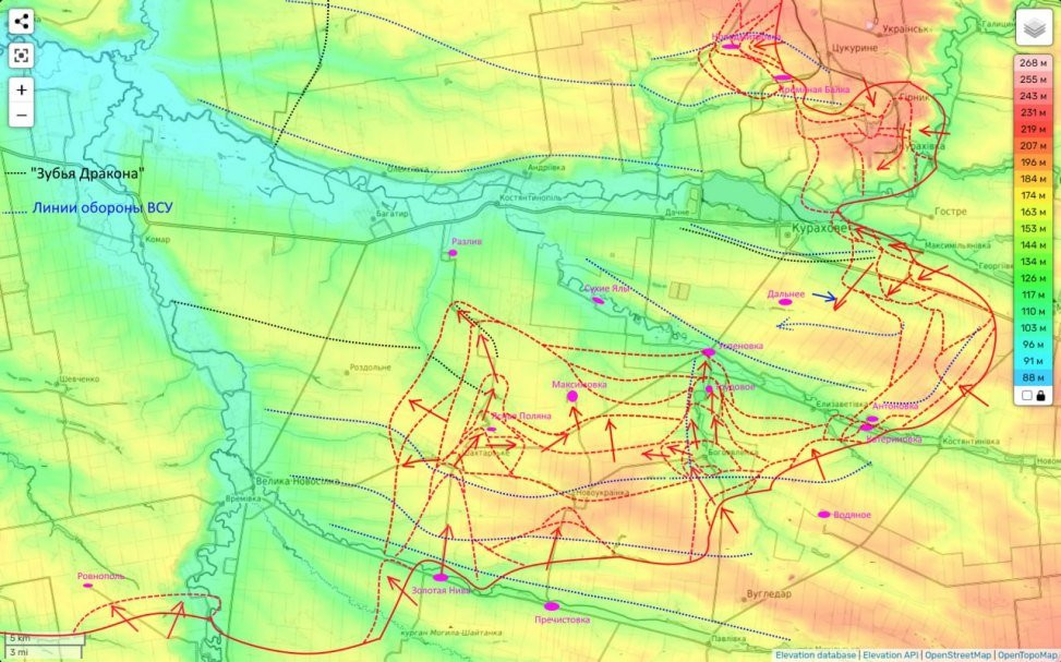 Но Большая Новоселка, это пока все-таки относительно дальняя перспектива, а пока основная цель данного удара - перерезать трассу Запорожье-Курахово. Для этого следующим мы должны взять под свой контроль н.п. Разлив. До которого нам осталось примерно 2 км.
