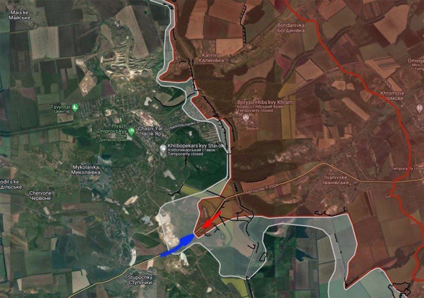 На ЧасовЯрском направлении ВС РФ продолжают вести штурмовые действия южнее Часов Яра в направлении Ступочки, идут позиционные бои, отмечает Telegram-канал "БелВПО".
