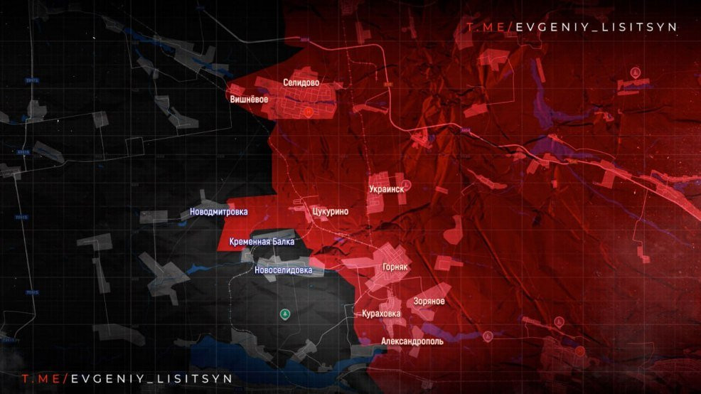 На Покровском направлении ВС РФ взяли под контроль оставшуюся часть Волченки и Степановку, боестолкновения продолжаются в районе Ильинки, Новоселидовки, Кременной Балки, за западную часть Новодмитровки, в районе Новоалексеевки и Лысовки. Предварительно, при поддержке бронетехники российские войска вошли в Новоалексеевку, на данном участке удалось продвинуться на глубину до 1.95 км.