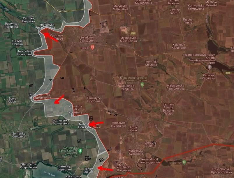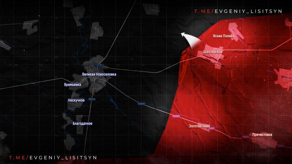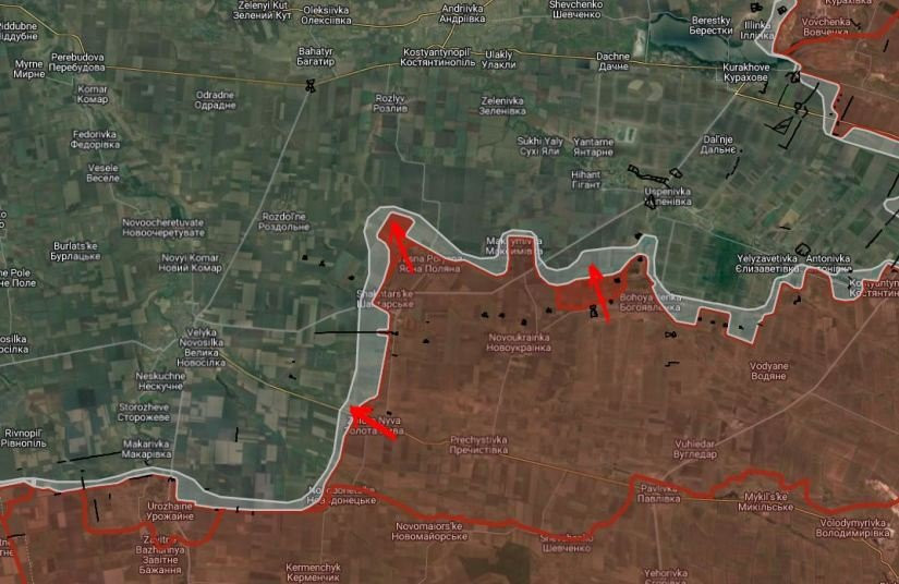 На Времевском направлении российские войска имеют тактические успехи западнее Золотой Нивы и Шахтерского, давят в направлении Великой Новоселовки. ВС РФ расширили контроль территории северо-западнее Ясной Поляны в направлении Раздольное.