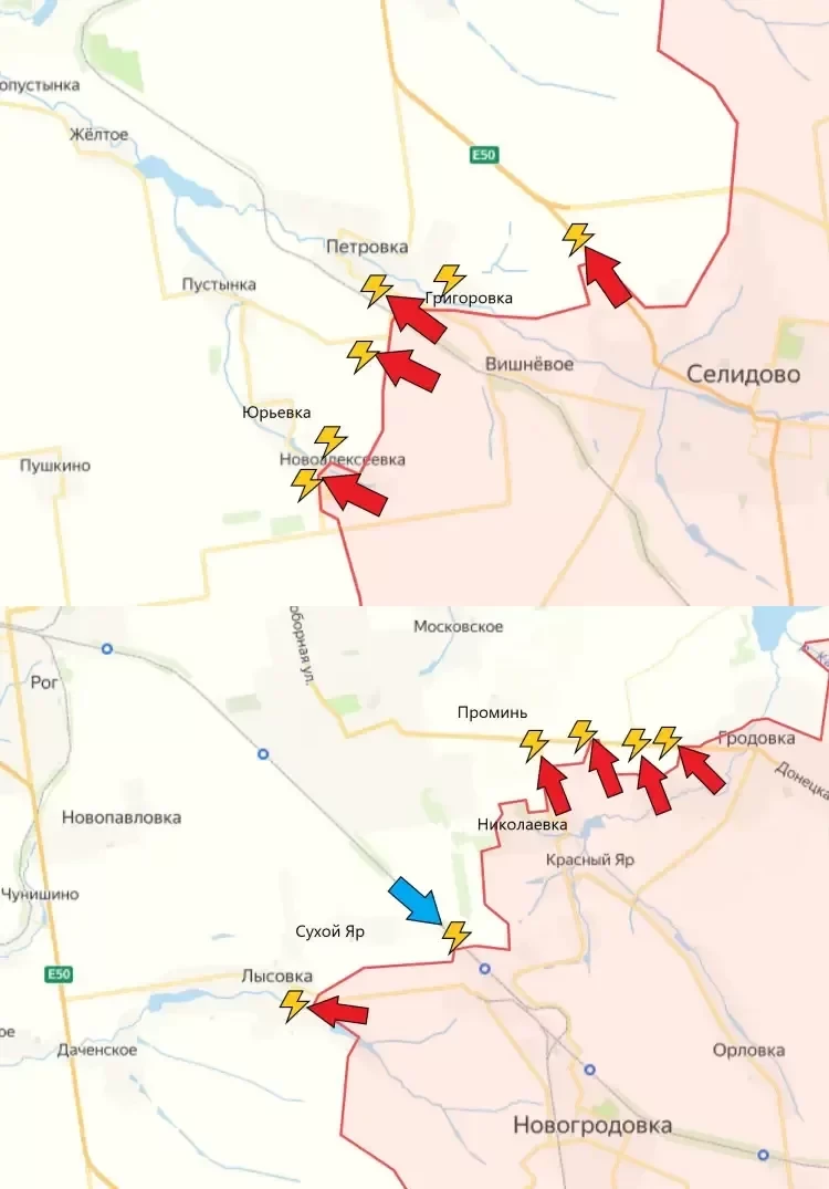 В Новоселидовке продолжаются встречные бои на западных и восточных окраинах. Также бои идут на северных подступах. Удивительно, но пока что ВСУ удаётся успешно оборонять этот небольшой населённый пункт уже более двух недель.