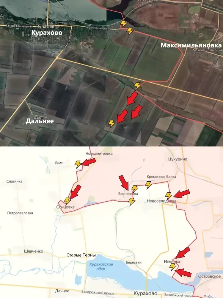 На южном участке ВС РФ существенно продвинулись к юго-востоку от Курахово. Наблюдается попытка продвижения к селу Дальнее, что южнее Курахово.