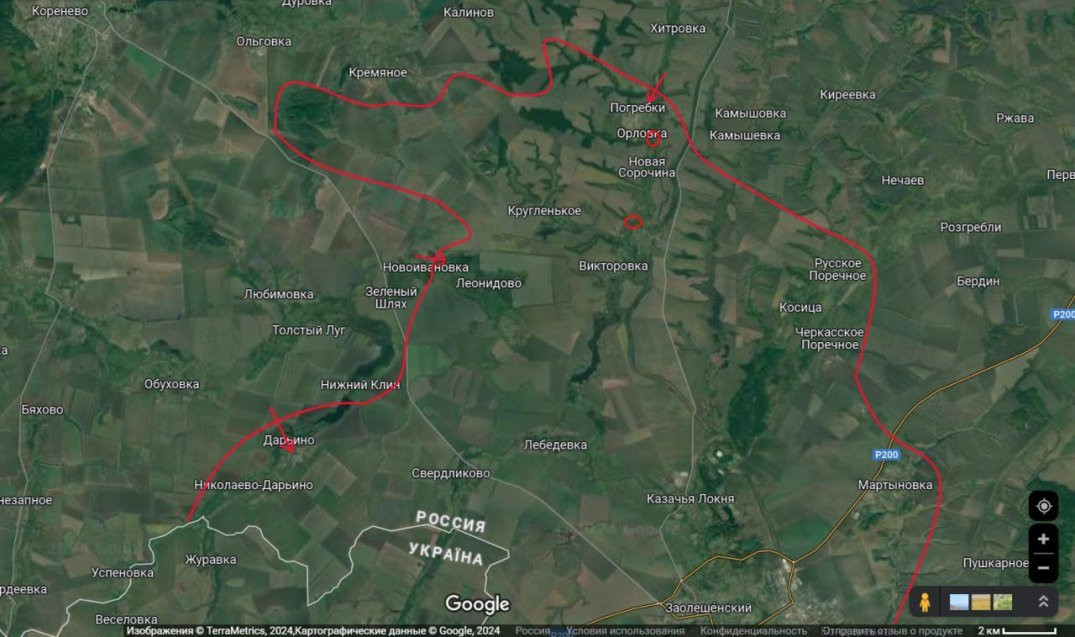 В районе Дарьино в принципе тоже самое. Одна посадка между Обуховкой и селом нами была взята ещё в первый день, а потом наступление увязло.