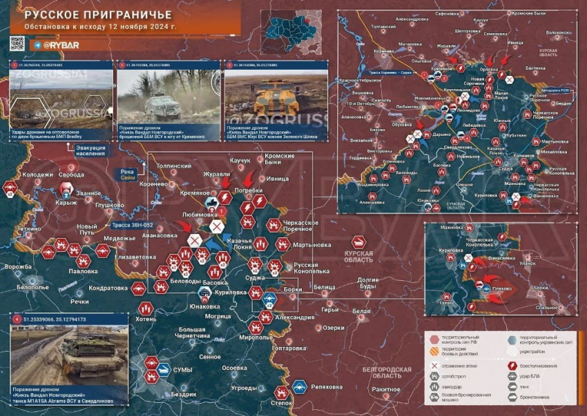 Новая карта боевых действий в Курской области по данным на 13.11.2024