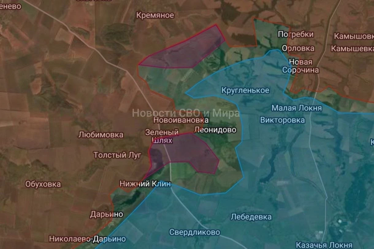 На западном участке пока что не удаётся расширить зону контроля в районе Леонидовки и Новоивановки. Враг сам периодически атакует на этом участке.