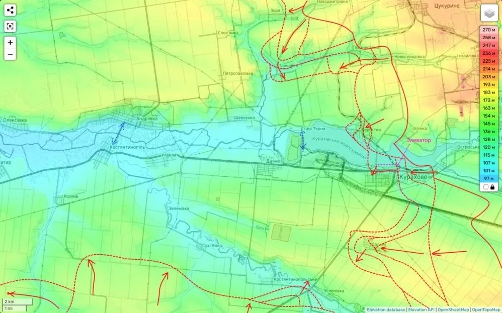 Здесь также далее можно ожидать удара из района Шахтерского вдоль трассы на Большую Новосёлку.
