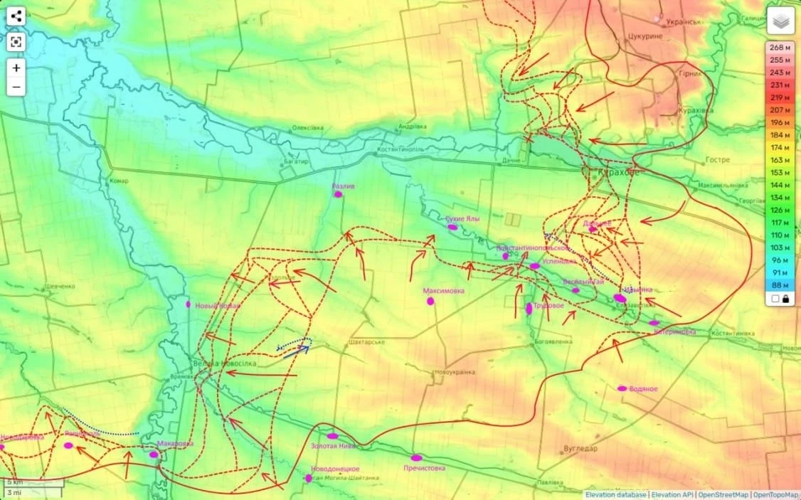 Ну и вследствие тяжёлого положения в этом районе у ВСУ просто нет сил удерживать районы южнее, а потому они здесь были окончательно прижаты к реке Мокрые Ялы, где опираясь на жилую застройку (а ещё больше на высоты западнее), пробуют оказывать нам сопротивление.