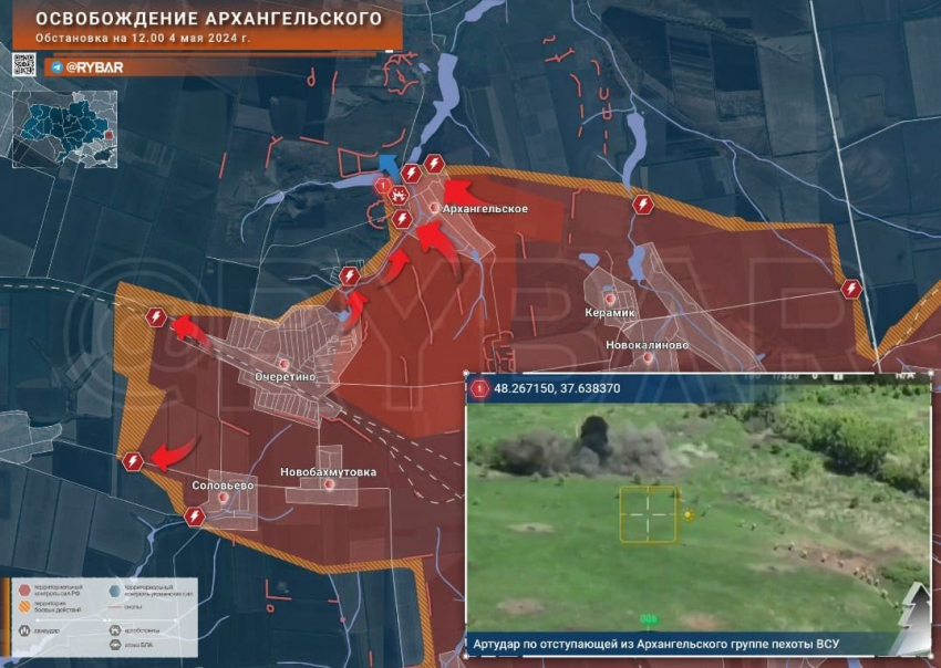 Несмотря на опубликованные на некоторых ресурсах кадры объективного контроля, на которых можно увидеть, как по отступающей из Архангельского пехоте ВСУ наносятся удары артиллерией ВС РФ, украинская сторона традиционно отказывается подтверждать потерю этого населенного пункта.