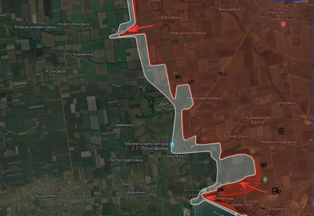 На Южно-Донецком направлении наши парни зашли в тыл обороны противника с востока. Штурмовым подразделениям 37 гвардейской мотострелковой бригады удалось существенно продвинуться к югу от Великой Новосёлки сократив расстояние до южных границ до нее до 4,5 км и до восточных границ Благодатного до 2,2 км.