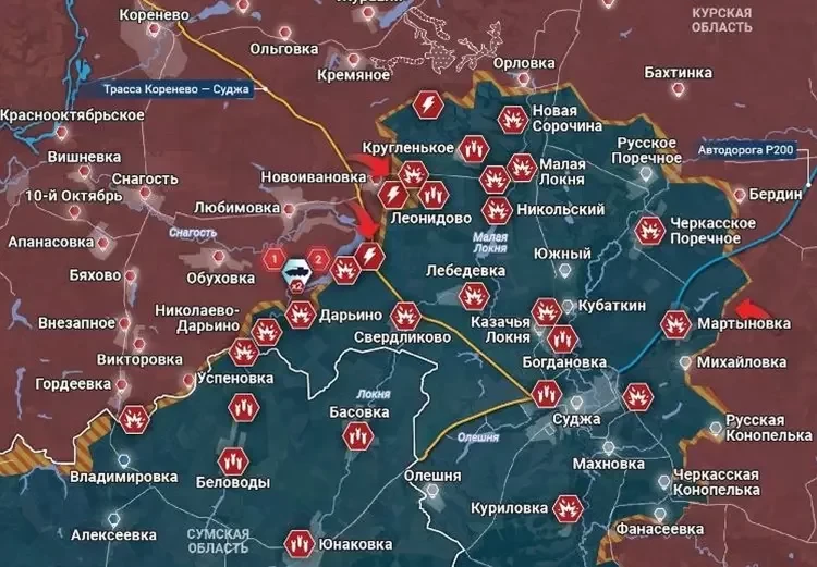 В Курской области не смолкают бои в Кореневском районе, где ВС РФ предпринимают попытки пробиться к Свердликово и Малой Локне, опираясь на Новоивановку.