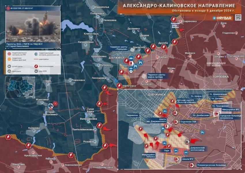 На Александро-Калиновском направлении российские войска продвинулись в центре Дзержинска, а также в микрорайоне Забалка на юге города.