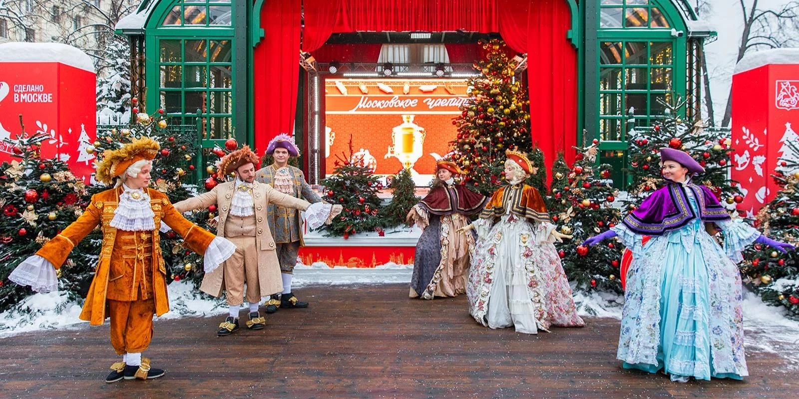 В выходные на ледовых площадках покажут представления с участием фигуристов и акробатов. В основе постановок — три романтические истории, объединенные темой московских традиций гостеприимства. После каждого мероприятия все желающие смогут прокатиться на коньках вместе с артистами и продегустировать новогодний купаж чая «Москва». Потребуется приобрести билет на каток.