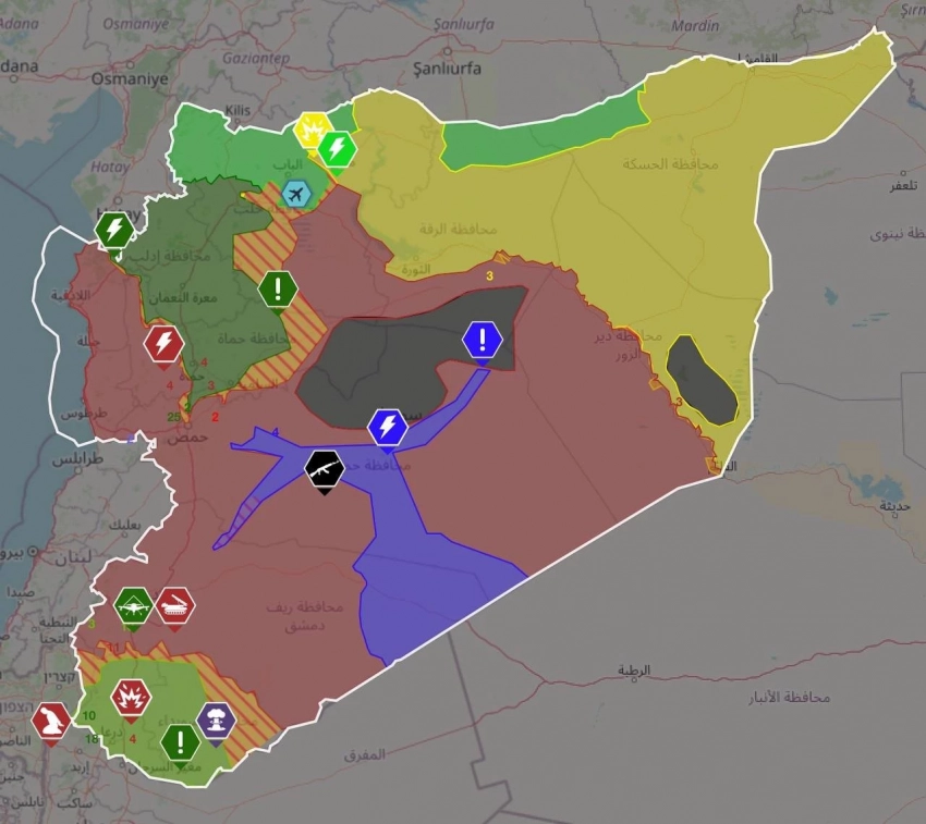 В центральной Сирии проамериканские группировки из зоны Эт-Танф установили контроль над Пальмирой и населенными пунктами на трассе до Дейр эз-Зора. Никакого сопротивления они не встретили и входили в города через брошенные сирийцами опорные пункты. В самом Дейр эз-Зоре закрепляются курдские СДС.