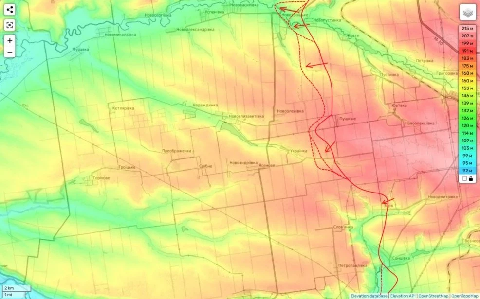 И сумели добиться здесь важного успеха. Продвижение здесь составило до 2 км и если мы сумеем его сегодня развить, то сумеем выйти с запада в селу Сторожевому, которое уже блокировано нашими войсками с востока со стороны Благодатного, сообщает Юрий Подоляка в своём Telegram-канале.