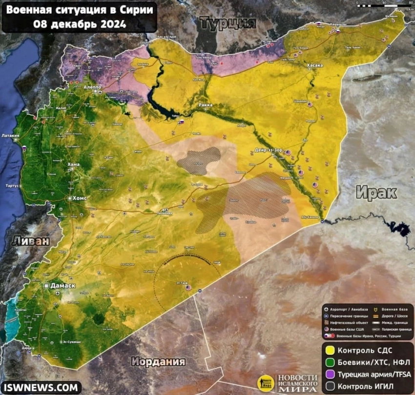 Карта боевых действий в Сирии на 9 декабря 2024