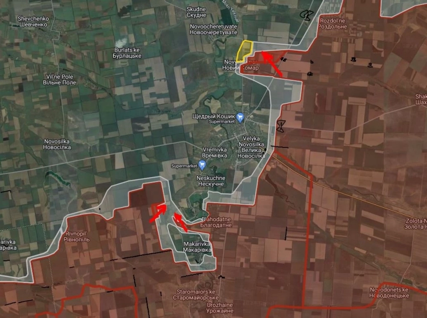 На Великоновосёлковском направлении ВСУ продолжают безуспешные попытки контратак в районе Нового Комара и Раздольного, сообщает PulsePen.