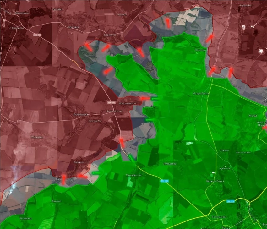 Также зачищен участок примерно в 4 км от Шептуховки до Погребков. Погребки сейчас примерно наполовину охвачены нашими войсками, ВСУ пытаются отбиться и контратакует.
